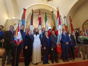 El martes 26 de diciembre de 2023, a mediodía, se celebró el acto simbólico que marcó el inicio oficial del aniversario. Ocho banderas garibaldinas partieron desde el local social para recoger a los padrinos de una nueva bandera y un banderín conmemorativos. El recorrido, acompañado por autoridades municipales, presidentes de otras comparsas, festeros ejemplares, insignias de la Comparsa, socios y simpatizantes, culminó en la ermita de San Blas. Allí, en un ambiente solemne y emotivo, tuvo lugar el acto de apertura, durante el cual fueron bendecidos la nueva bandera y el banderín, otorgándoles con ello el honor de presidir cada uno de los actos del aniversario. Este evento supuso el arranque del programa conmemorativo, evocando la historia, el orgullo festero y el legado de generaciones de garibaldinos.