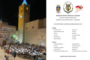 El viernes 26 de enero de 2024 se llevó a cabo uno de los eventos más esperados por los amantes de la música festera: el tradicional concierto interpretado por la Unión Musical y Artística de Sax. En él se estrenó el pasodoble “150 aniversario Garibaldinos de Sax”, compuesto especialmente para la ocasión por José Damián Cascales Sánchez y Cristian Ripoll Juan, a petición de la Directiva. El domingo 28, esta composición volvió a resonar, esta vez a cargo de la Sociedad Instructiva Musical Sones de Sax, dentro del concierto titulado “Lo nuestro”, reafirmando así el papel esencial de la música como vehículo de identidad festera.
