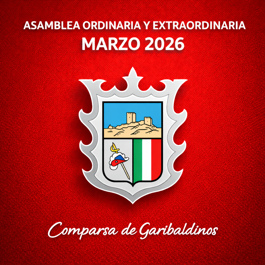 La Comparsa de Garibaldinos realizará su Asamblea General Ordinaria de Socios el próximo sábado 21 de marzo de 2026 a las 16:30 horas en primera convocatoria y a las 17:00 horas en segunda convocatoria para tratar el siguiente: