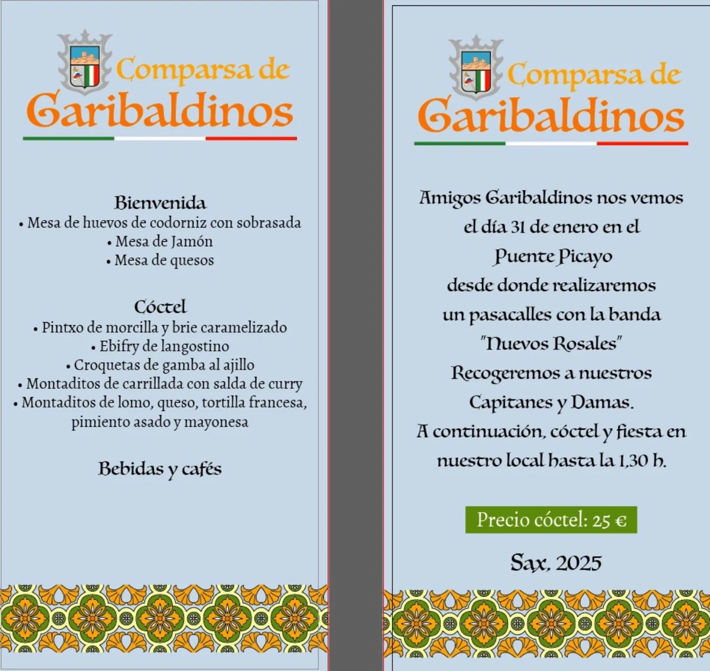 En la imagen adjunta os dejamos el menú. Ya os podéis apuntar mandando mensaje al número de la comparsa o acudiendo al local los jueves de 20:00 a 22:00 horas.