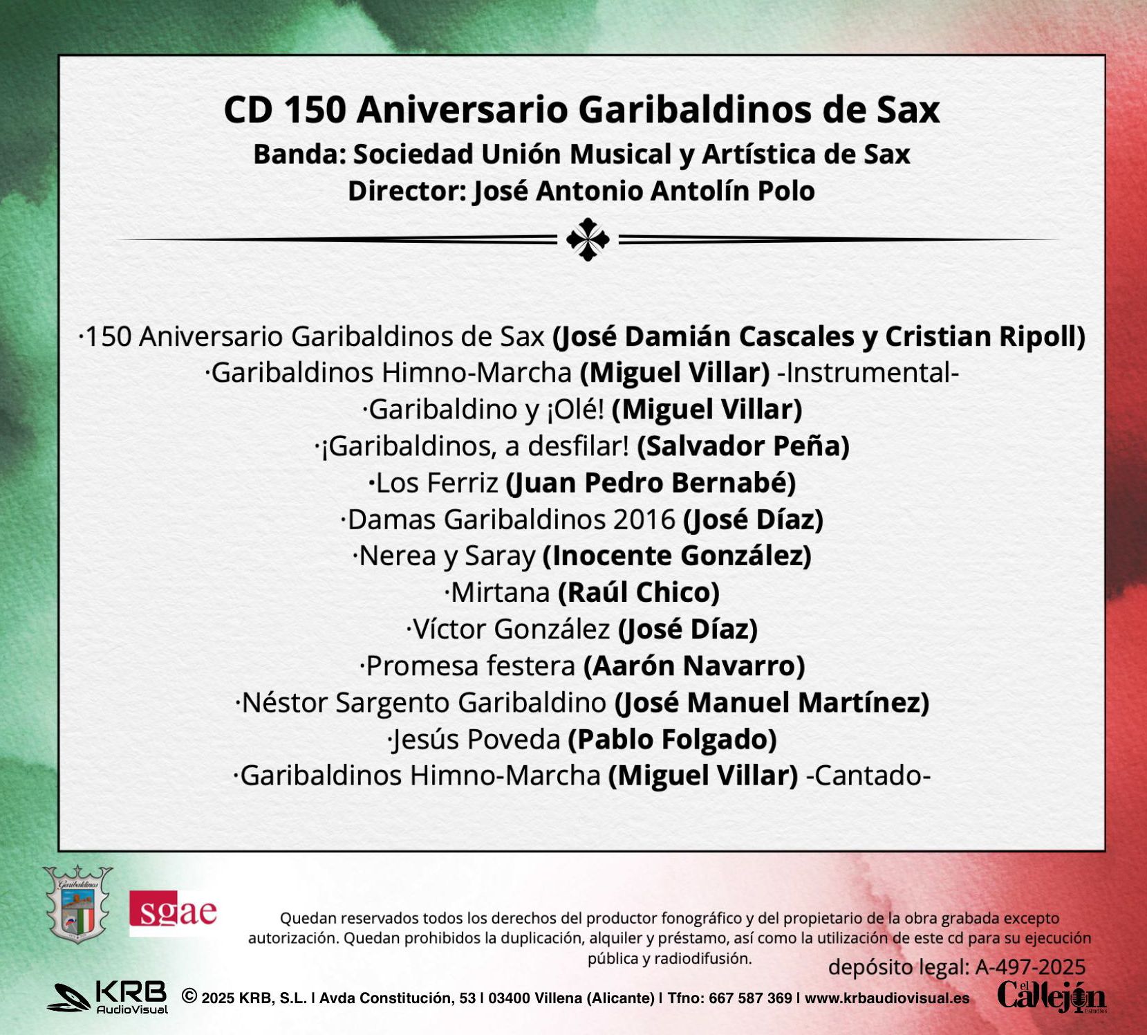 La grabación tuvo lugar el sábado 22 de marzo de 2025 en la sede de la Unión Musical y Artística de Sax. Como elemento singular, se incorporó por primera vez una versión cantada del “Himno de los Garibaldinos”, interpretado por voces de socios y socias de nuestra comparsa.