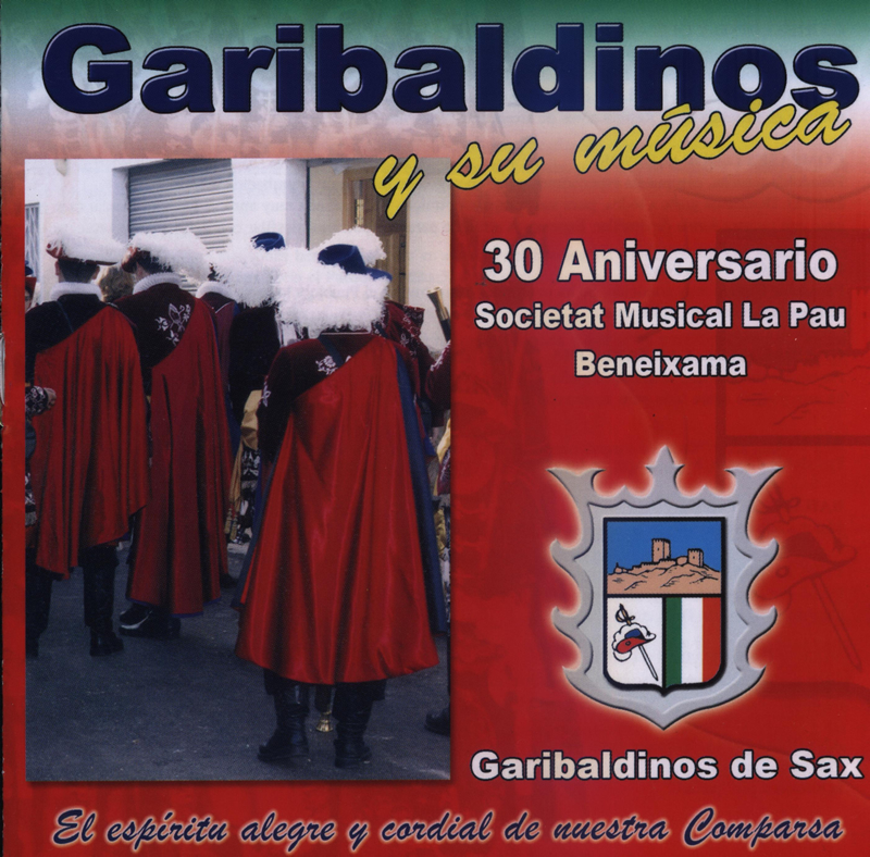 En la Asamblea General del año 1976, los socios de la Comparsa de Garibaldinos decidieron que la Sociedad Musical «La Pau» de Beneixama nos acompañara en los desfiles de nuestras Fiestas. En 2006, y con motivo del 30 aniversario de su primera actuación, se decidió editar junto con esta entidad un CD con piezas representativas de nuestra Comparsa en agradecimiento por su esfuerzo y dedicación durante todos estos años.